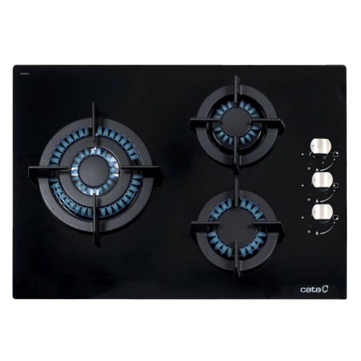 3 gázégő égésbiztosítóval, automata szikragyújtás, fekete üveg felület, öntöttvas rács, teljesítmény: 6,25 kW, 1 db közepes gázégő - 1,75 kW, 1 db tripla koronás WOK gázégő - 3,5 kW, 1 db normál gázégő - 1 kW