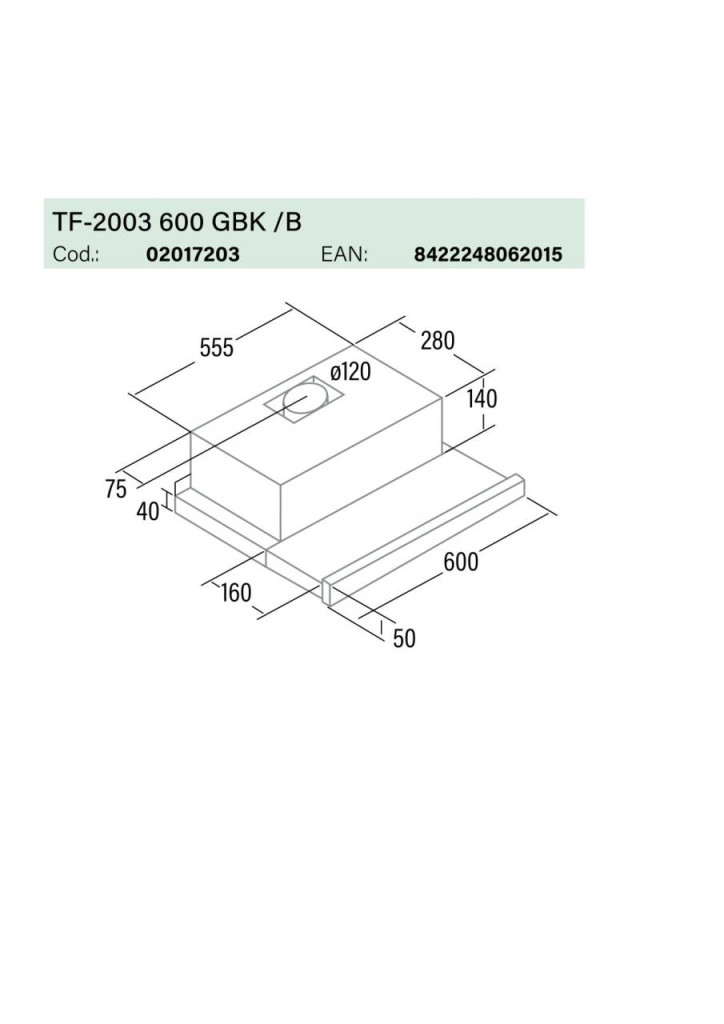 A CATA TF-2003 sorozatot arra tervezték, hogy beszerelhető legyen egy konyhabútor felső szekrénybe. Beépítése gyors és egyszerű, a tetején és az oldalán is található rögzítési pontoknak köszönhetően. A távtartó a páraelszívó és a fal között távolság áthidalására szolgál. A páraelszívó dobozában megtalál minden tartozékot a készülék felszereléséhez. Előlapja levehető, így akár konyhabútor anyagával azonos előlap is felszerelhető. Az elszívott levegő a szabadba egy csővezetéken keresztül távozik, (kivezetéses üzemmód) amit egy 120 vagy 125 mm átmérőjű nyíláshoz kell csatlakoztatni egy csőcsonk segítségével. Tilos égéstermékek céljára használt csatornákba, kéményekbe bevezetni!