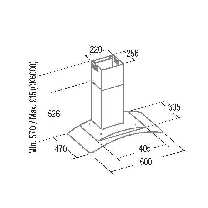 A CATA CK-6000 hajlított üveges fali fekete elszívó 60 cm-es szélességben. A készülékben található motor maximális teljesítménye: 470 m3/h. A páraelszívó zajszintje: 52-68 (dB/A). Energia besorolása: „A” kategória és az éves elektromos fogyasztása 25 kW/év, vezérlése három fokozatú mechanikus (nyomógombos) vezérlés. A páraelszívót lehet használni kivezetéses és belső keringtetéses üzemmódban is.