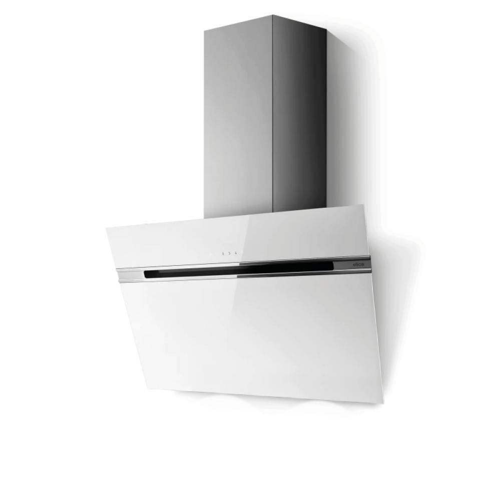 Elica STRIPE WH/A/90 döntött üveges fali páraelszívó fehér üveggel és inox kürtővel