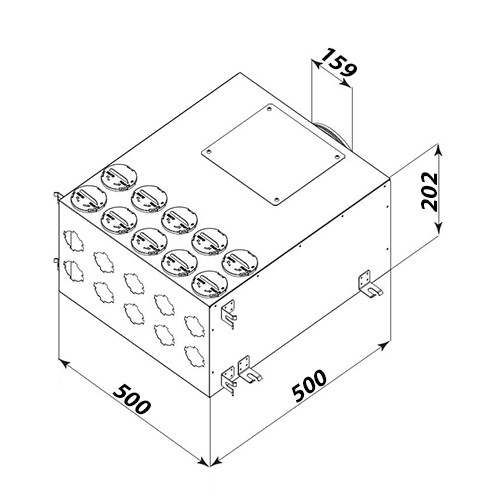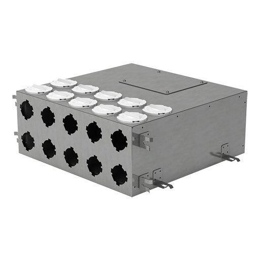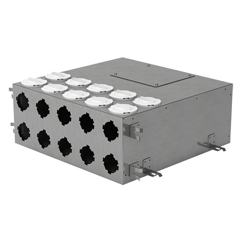 Az elosztó a légkezelő egység és a helység bevezető valamint kimeneti nyílása között helyezkedik el. Az elosztószekrény egy Ø160 mm-es cső csatlakoztatására alkalmas a Flexitech Ø63 mm-es csőrendszerhez. A 10 db kimenet lehetővé teszi további csővezetékek telepítését házakban, lakásokban, irodákban vagy egyéb létesítményekben, ahol a levegő -20 °C és 60 °C közötti hőmérsékleten egyenletesen áramlik. Az elosztó doboz fémből és horganyzott fémlemezből készült, a bemenetek gumi tömítéssel zártak, minimalizálva a légszivárgást. A légáramlás levegő tompítóval szabályozható, a csővezetékek Flexitech karimákkal csatlakoznak, a fel nem használt kapcsokat pedig az elosztó doboz fedelével kell lezárni.