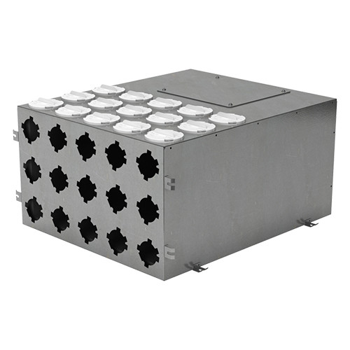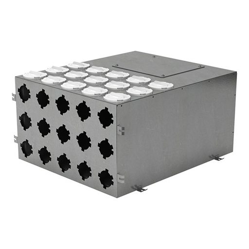 Az elosztó a légkezelő egység és a helység bevezető valamint kimeneti nyílása között helyezkedik el. Az elosztószekrény egy Ø200 mm-es cső csatlakoztatására alkalmas a Flexitech Ø63 mm-es csőrendszerhez. A 15 kimenet lehetővé teszi további csővezetékek telepítését házakban, lakásokban, irodákban vagy egyéb létesítményekben, ahol a levegő -20 °C és 60 °C közötti hőmérsékleten egyenletesen áramlik. Az elosztó doboz fémből és horganyzott fémlemezből készült, a bemenetek gumi tömítéssel zártak, minimalizálva a légszivárgást. A légáramlás levegő tompítóval szabályozható, a csővezetékek Flexitech karimákkal csatlakoznak, a fel nem használt kapcsokat pedig az elosztó doboz fedelével kell lezárni.