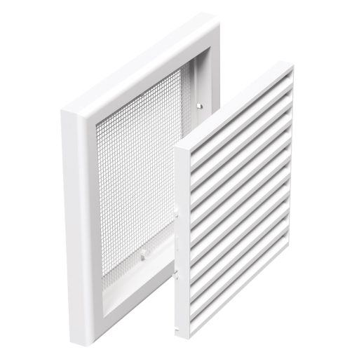 A szellőzőrács elszívásra és kifújásra egyaránt alkalmas, így mindkét irányban hatékony légáramlást biztosít. Beépített rovarvédő hálóval van ellátva, amely megakadályozza a nem kívánt rovarok bejutását. Külső eleme könnyedén lepattintható, ezáltal a tisztítás gyors és egyszerű. Külső mérete 186×186 mm. A termék csőcsonkot nem tartalmaz.