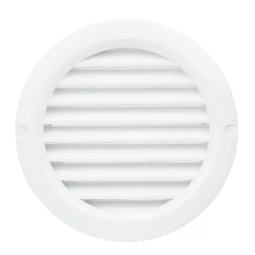 A kerek műanyag szellőzőrács prémium minőségű, UV-álló ABS anyagból készült, amely hosszú távon is megőrzi tartósságát és esztétikus megjelenését. Rovarvédő hálóval ellátva, amely megbízható védelmet nyújt a nem kívánt rovarok ellen.