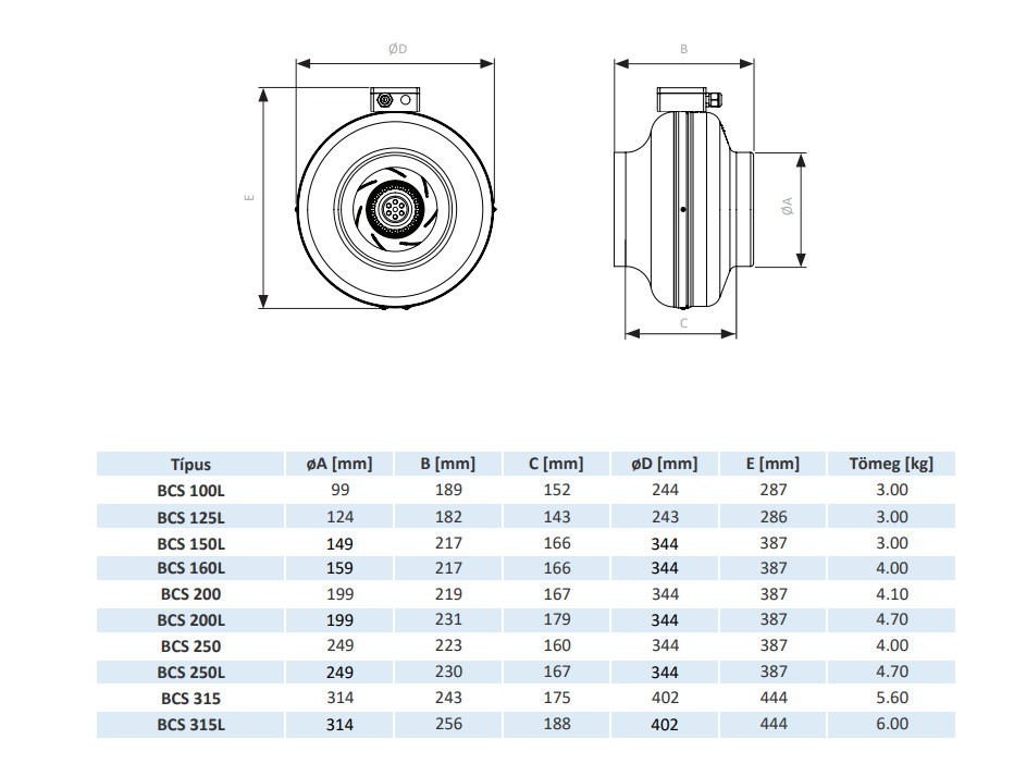 Közvetlen meghajtású centrifugális csőventilátor hátrahajló járókerékkel, AC motorral, fali tartóval, kör keresztmetszetű légcsatornához, alacsony és közepes nyomású befúvó és elszívó szellőző- és légkondicionáló rendszerekhez. A ventilátorok alkalmasak lakóépületek, raktárak, fürdőszobák, mosdók, mellékhelyiségek és egyéb olyan helyiségek levegőellátására vagy elszívására, ahol nincs szükség hővisszanyerésre, valamint szellőztető rendszerekben erősítő ventilátorként is.