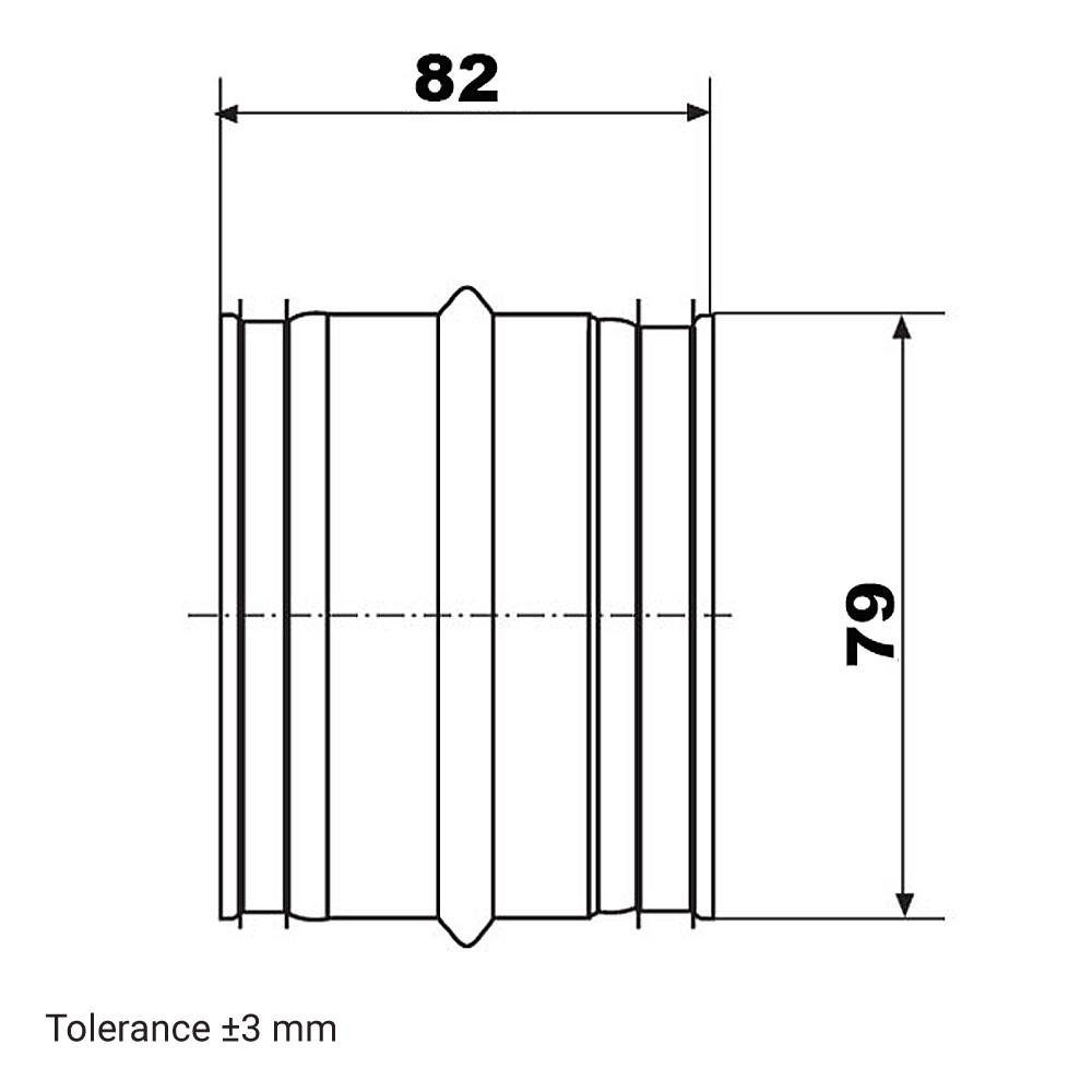 A 80 mm átmérőjű, tömítőgumival ellátott rozsdamentes acél PMI-O csőtoldó teljes mértékben kompatibilis az azonos átmérőjű általános spiro csővezetékekkel, valamint a rozsdamentes acél csőrendszerekkel.