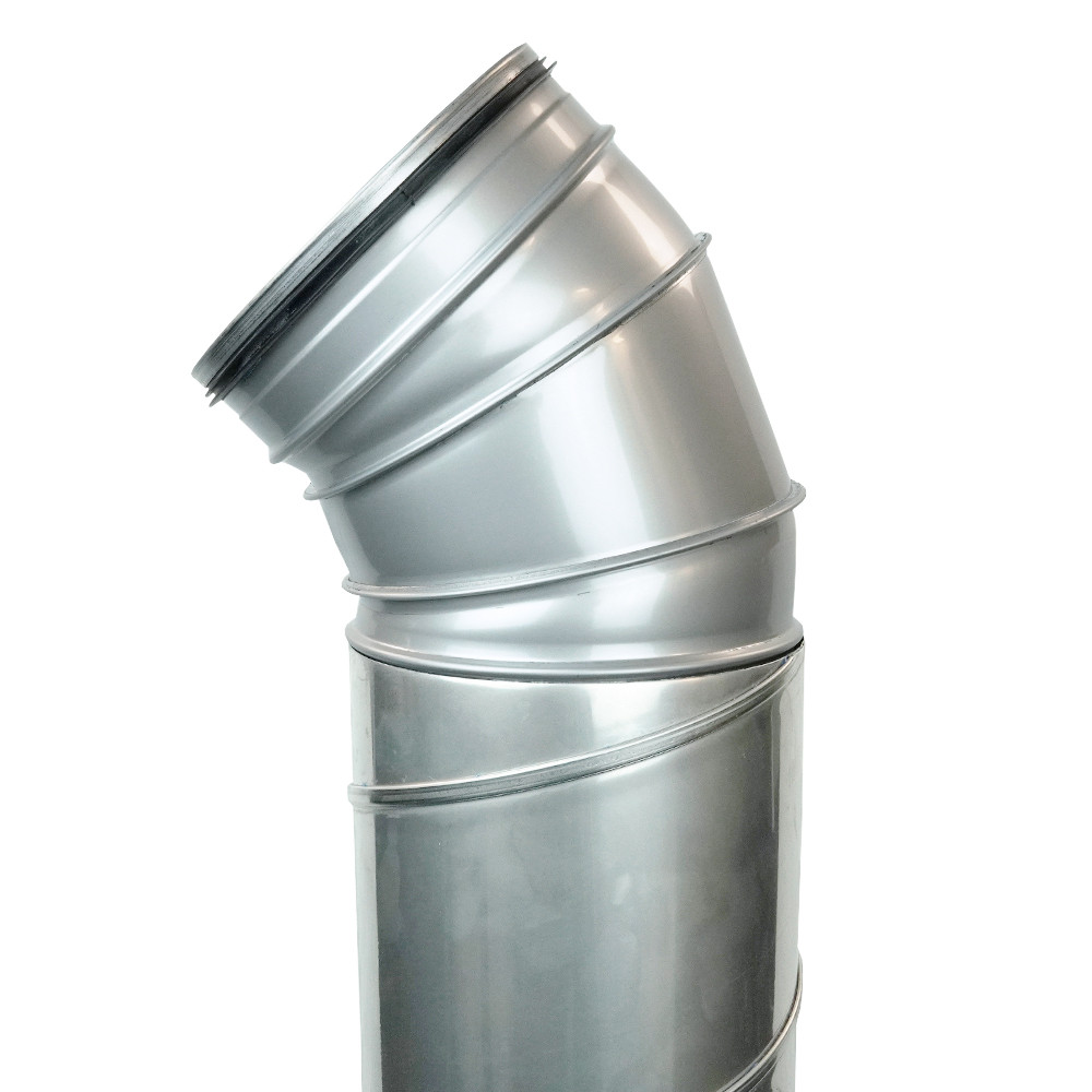 A BENDI-O 45°-os, rozsdamentes acélból készült, tömítőgumival ellátott könyök idom könnyen csatlakoztatható a tartozékok széles választékához. Teljesen kompatibilis az általános spiro csővezetékkel, a rozsdamentes acél elemekkel, valamint minden olyan tartozékkal, amelyek egyszerűen egymásba csúsztathatók.
