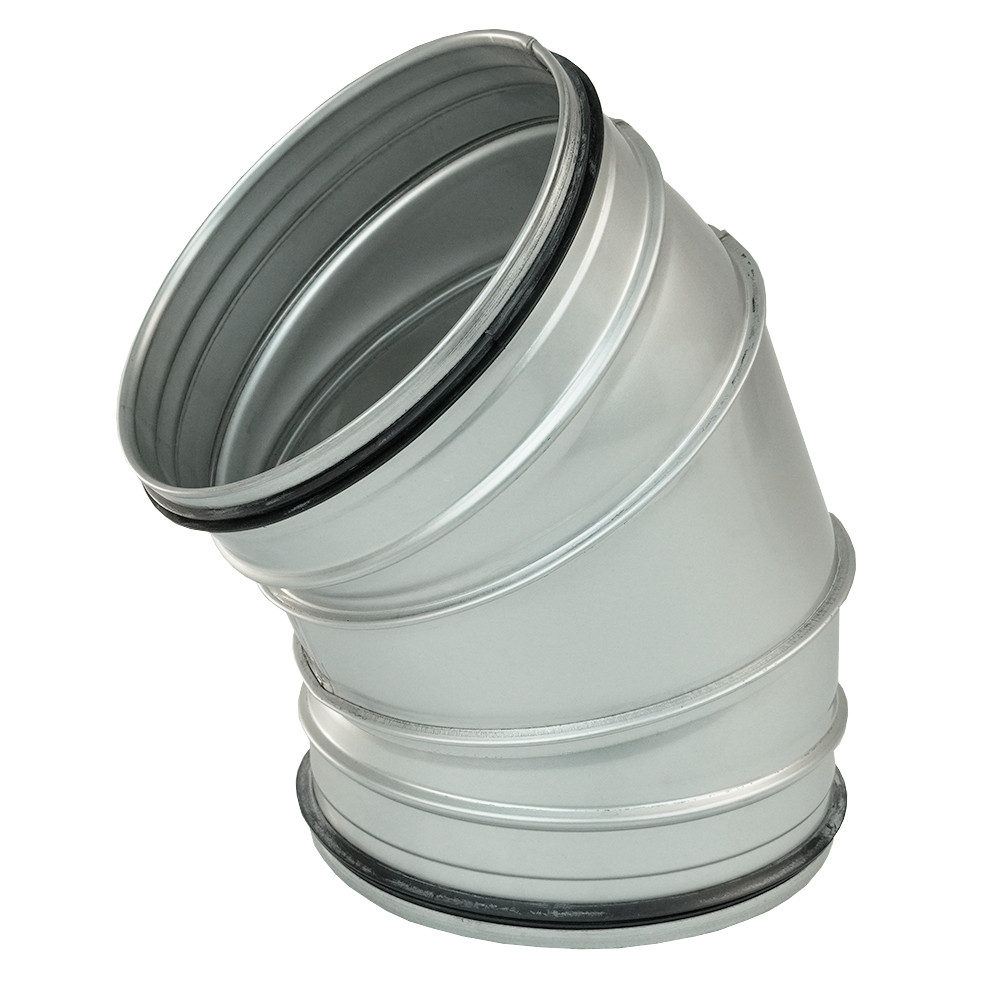 A BENDI-O 45°-os, rozsdamentes acélból készült, tömítőgumival ellátott könyök idom könnyen csatlakoztatható a tartozékok széles választékához. Teljesen kompatibilis az általános spiro csővezetékkel, a rozsdamentes acél elemekkel, valamint minden olyan tartozékkal, amelyek egyszerűen egymásba csúsztathatók.