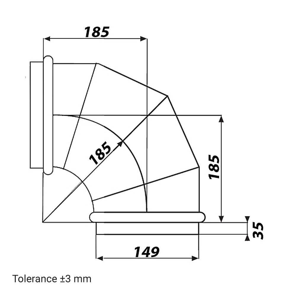 A BENDI-O 90°-os, rozsdamentes acélból készült, tömítőgumival ellátott könyök idom könnyen csatlakoztatható a tartozékok széles választékához. Teljesen kompatibilis az általános spiro csővezetékkel, a rozsdamentes acél elemekkel, valamint minden olyan tartozékkal, amelyek egyszerűen egymásba csúsztathatók.