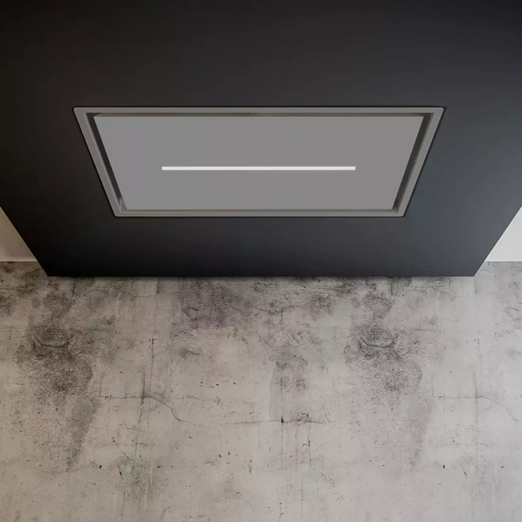 A SIRIUS SLT-971 EM páraelszívó mennyezetbe építhető kivitele tökéletes választás azokba a modern konyhákba, ahol a tágas tér, a funkcionalitás és a letisztult forma harmóniája elsődleges szempont. A 90 cm széles készülékház elegánsan simul bele a mennyezeti síkba, miközben látványosan kiemeli a konyha magas színvonalú belsőépítészeti megoldásait. A fehérre festett rozsdamentes acél testet prémium fehér üveg panel koronázza meg, amely nemcsak látványos, hanem könnyen tisztán tartható is.