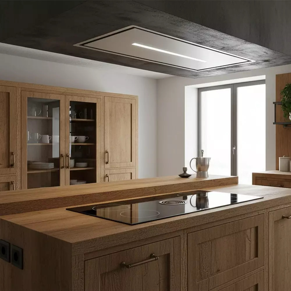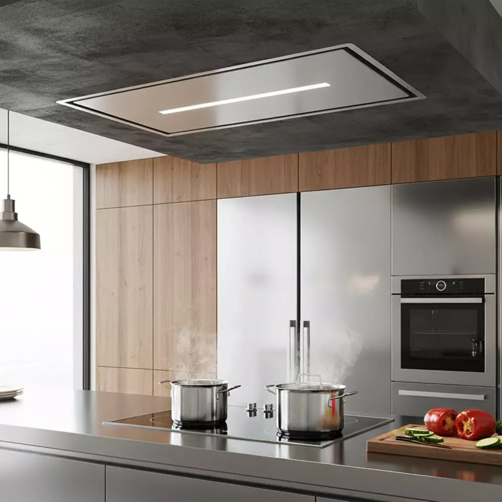 A SIRIUS SLT-971 LESS BRUSHLESS TW páraelszívó mennyezetbe építhető kivitele tökéletes választás azokba a modern konyhákba, ahol a tágas tér, a funkcionalitás és a letisztult forma harmóniája elsődleges szempont. A 90 cm széles készülékház elegánsan simul bele a mennyezeti síkba, miközben látványosan kiemeli a konyha magas színvonalú belsőépítészeti megoldásait. A letisztult Inox felület időtálló eleganciát sugall, amely hosszú éveken át megőrzi esztétikus megjelenését. Diszkrét kialakítása miatt szinte észrevétlenül simul bele a térbe, miközben hatékonyan végzi feladatát.
