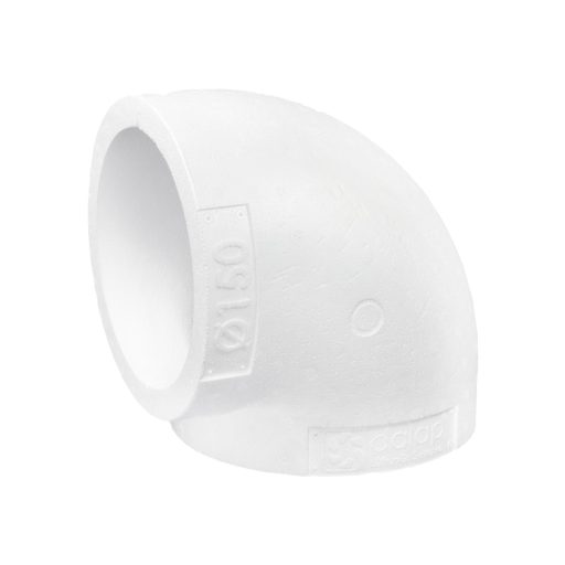 A szigetelés 90° műanyag könyökidomra Ø 150 mm alkalmas, ahol fennáll a nagy hőmérsékletkülömség veszélye és ezáltal a párásodás.A szigetelés magas szigetelő tulajdonságokkal rendelkezik, megakadályozza a kondenzvíz képződését a csövekben és nagyon könnyű. Ezenkívül megvédi a csővezetéket a sérülésektől és csökkentheti a csővezetékben fellépő zajt. A szigetelés esztétikus megjelenésű, egészségre káros hatása nincs és újrahasznosítható.