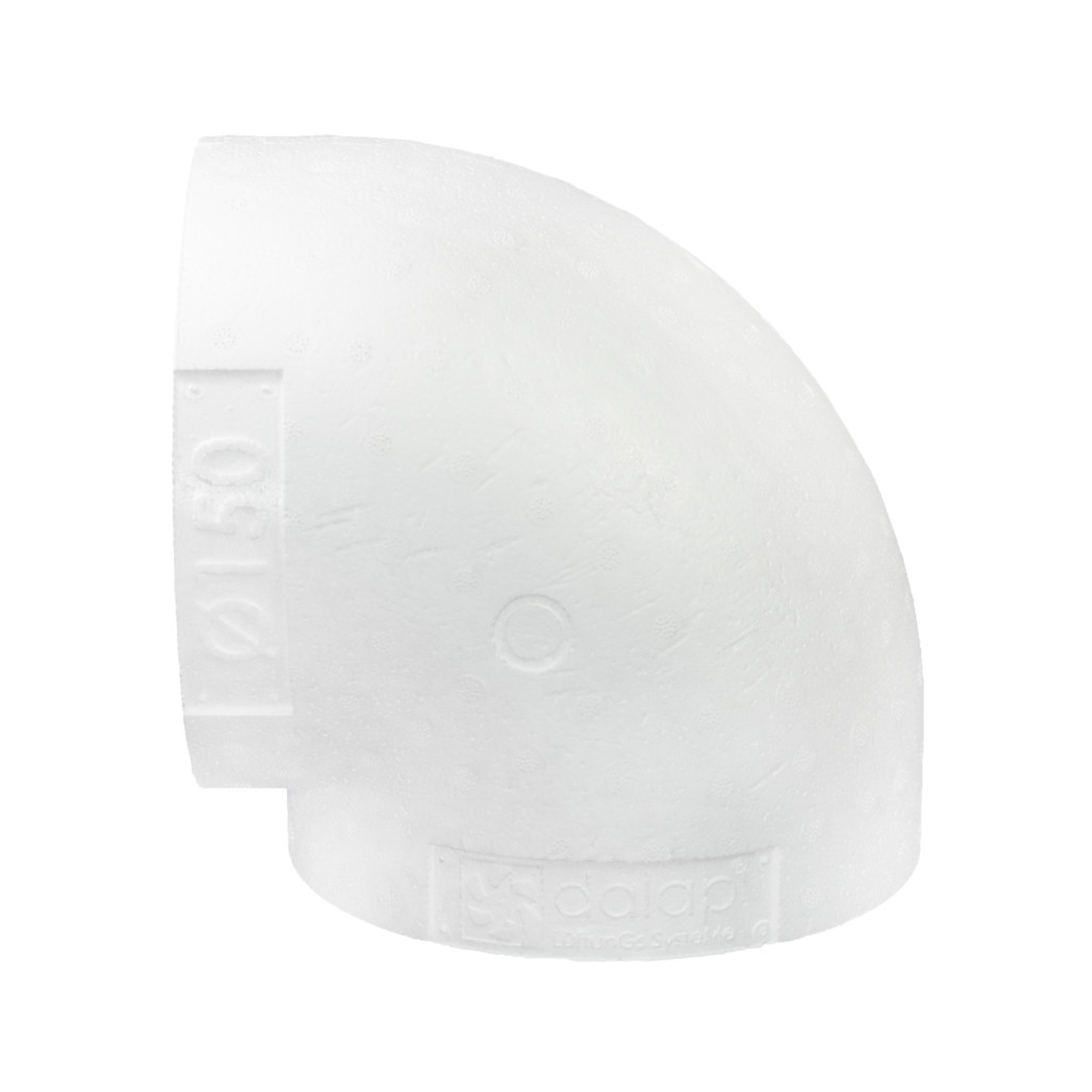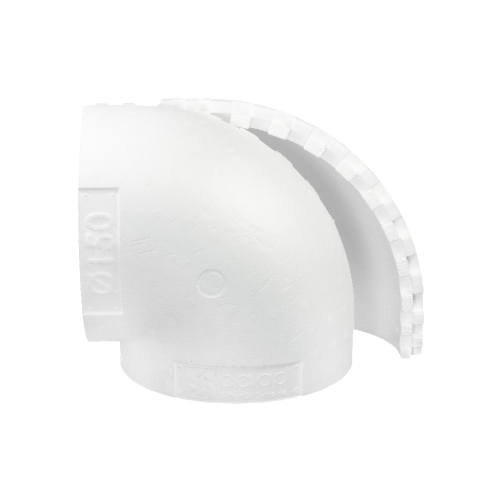 A Dalap EPS szigetelés 90° műanyag könyökidomra Ø 150 mm alkalmas. A szigetelés alkalmazható háztartásokban és ipari területeken egyaránt. A szigetelés használata univerzális, nem kizárólag légcsatornák szigetelésére használható.