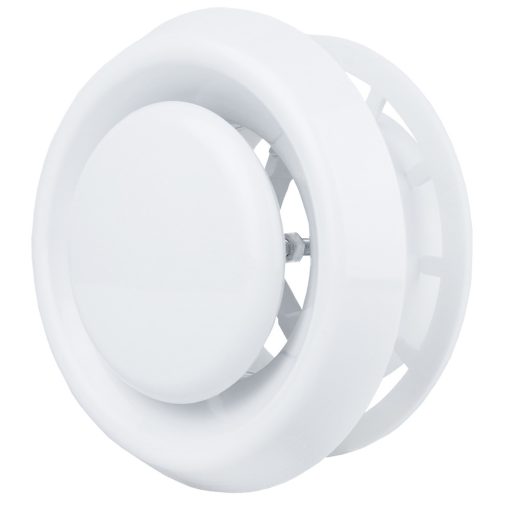 A légszelep tartós, fehér ABS műanyagból készül, amely könnyen tisztítható, és esztétikusan illeszkedik a belső terekhez.