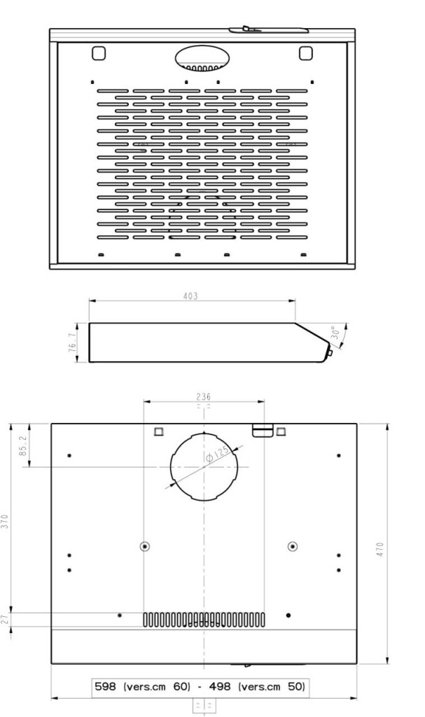 Ha a levegő a szabadba egy csővezetéken keresztül távozik, (vagyis kivezetéses üzemmódban használjuk), akkor egy 125 mm átmérőjű nyíláshoz kell csatlakoztatni a csőcsonk segítségével. Tilos égéstermékek céljára használt csatornákba, kéményekbe bevezetni! Ügyeljen arra, hogy amikor a páraelszívó és más, nem elektromos üzemű kályha vagy tűzhely egyszerre működik, elegendő mennyiségű levegő utánpótlás álljon rendelkezésre. A megfelelő működtetés érdekében biztosítani kell a légutánpótlást az ajtókon, ablakokon vagy más légbevezetőkön keresztül.