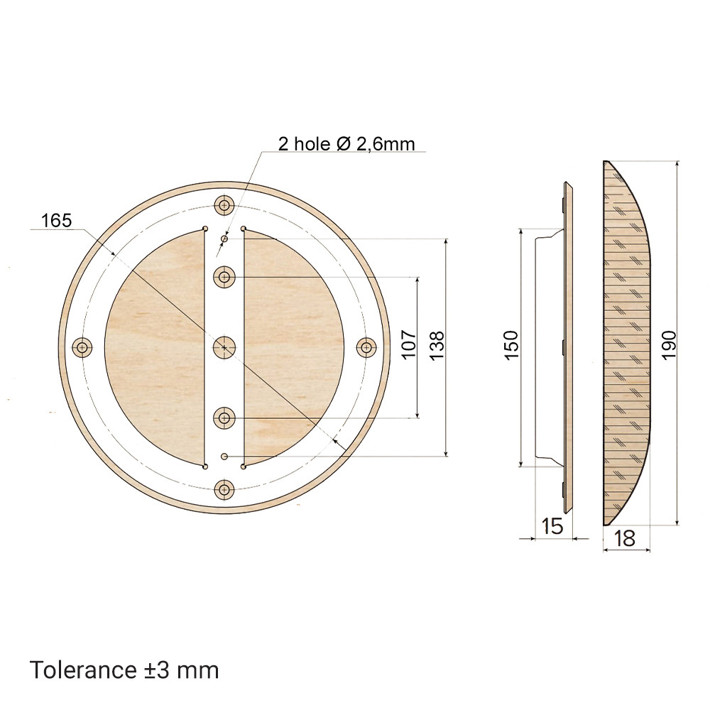 Az univerzális fa légszelep fenyőből készült, és a légcsatornák valamint szellőzőrendszerek esztétikus lezárására szolgál. Kialakítása lehetővé teszi a szennylevegő elszívását és a friss levegő befúvását egyaránt, így sokoldalúan alkalmazható különféle szellőztetési rendszerekben.