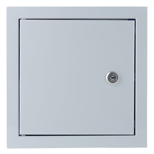 A szürke színű, fémből készült, fehér 200x200 mm méretű, zárható szervízajtó a falba, illetve a csempébe telepíthető. A szervízajtó telepítése egyszerű, ragasztó alkalmazásával, vagy falazással könnyen kivitelezhető. A kiváló minőségű, modern kivitelezésű, zárható szervízajtó megkönnyíti és biztonságossá teszi a vezérlést.