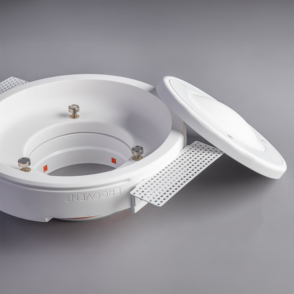 Az ERGOVENT RONDO láthatatlan, formatervezett légszelep kifejezetten gipszkarton mennyezetekbe és falakba történő beépítéshez készült. Gipsz alapanyagának köszönhetően beépítés után a mennyezettel vagy fallal azonos színűre festhető, így természetes módon beleolvad a belső térbe.