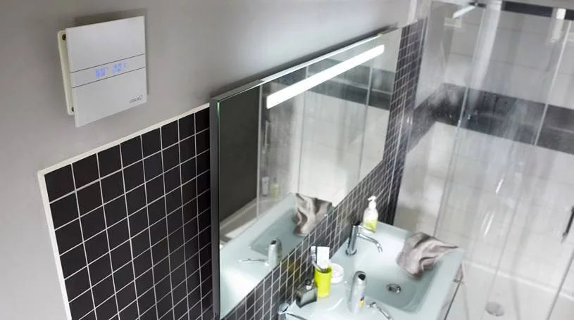 A beépített szenzor automatikusan indítja a szellőztetést, ha a helyiség páratartalma a beállított érték fölé emelkedik. A küszöbérték 40–90% relatív páratartalom között állítható.